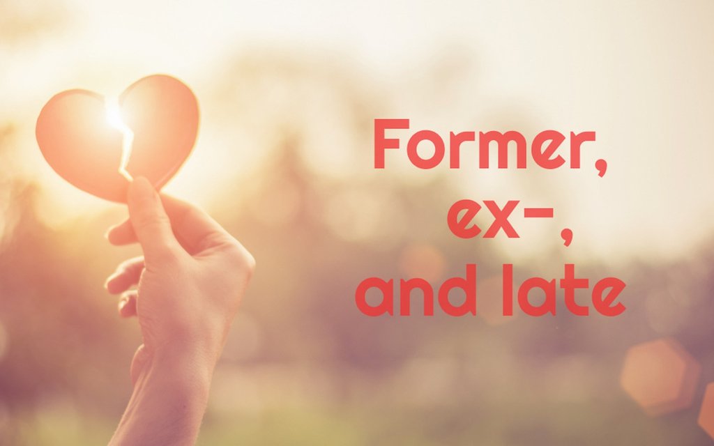 その他の違いは、語法です。’’late’’はもっぱら亡くなった人に対する形容詞として使われます。”former”’と”ex-”は、意味は同じですが、異なった文脈で使われます。以下はこれらの使い方のヒントです。
